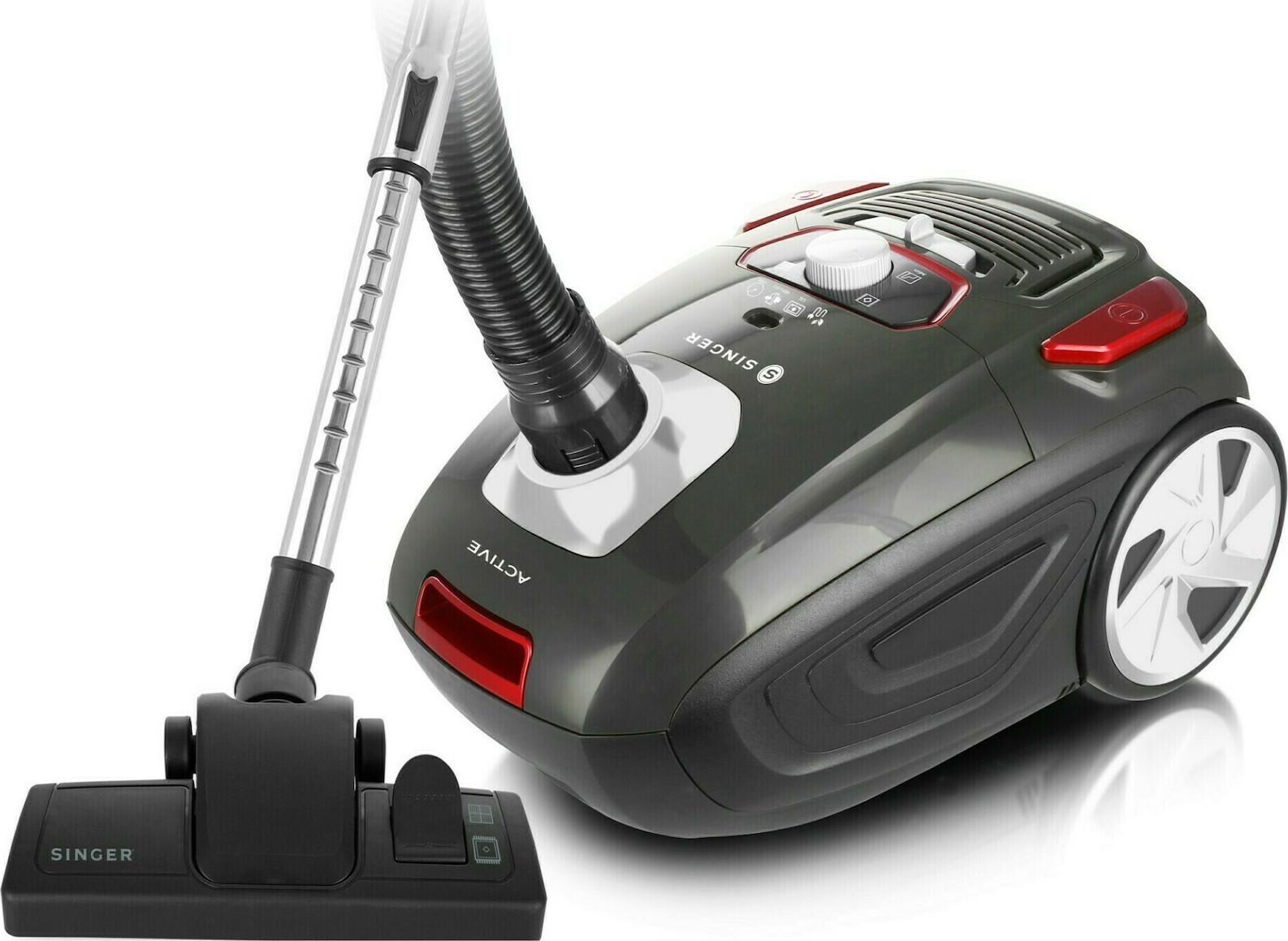 Η ηλεκτρική σκούπα VC-206030 της Singer, διαθέτει ειδική σακούλα με χωρητικότητα 3.5 λίτρων, στην οποία συσσωρεύεται η σκόνη και όταν γεμίσει πρέπει να αντικατασταθεί με καινούρια. Είναι εφοδιασμένη με ειδικό φίλτρο το οποίο συγκρατεί την σκόνη, τους ρύπους και τα αλλεργιογόνα, με αποτέλεσμα να έχετε καθαρότερο αέρα στο χώρο σας κατά τη λειτουργία της. Σε λείες επιφάνειες μπορείτε να ρυθμίζετε την ισχύ της σκούπας σε φουλ ένταση, ενώ σε χαλιά μπορείτε να τη χαμηλώνετε, για να μην κολλάνε τα χαλία στη σκούπα κατά το καθάρισμα. Τέλος έχει μακρύ καλώδιο το οποίο διευκολύνει το σκούπισμα καθώς δεν χρειάζεται να διακόψετε τη λειτουργία της για να αλλάξετε πρίζα.